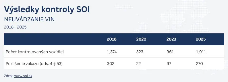 Banská Bystrica, 16. február 2026: Slovenská obchodná inšpekcia (SOI) vykonala v období od marca do septembra 2025 kontrolu zameranú na dodržiavanie ustanovení § 53 ods. 3 a 4 zákona č. 106/2018 Z. z., ktoré upravujú povinnosti pri predaji ojazdených vozidiel. Kontrola sa zamerala najmä na manipuláciu so stavom odometra a na uvádzanie identifikačného čísla vozidla (VIN) a údajov o najazdených kilometroch.